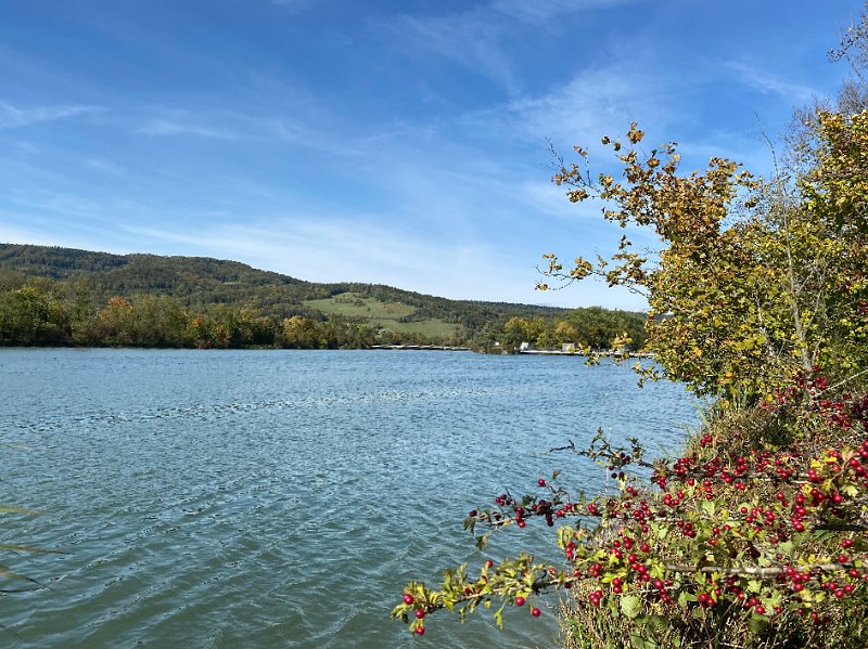 Vor dem Schinznacher-Wehr, dahinter der Bözberg