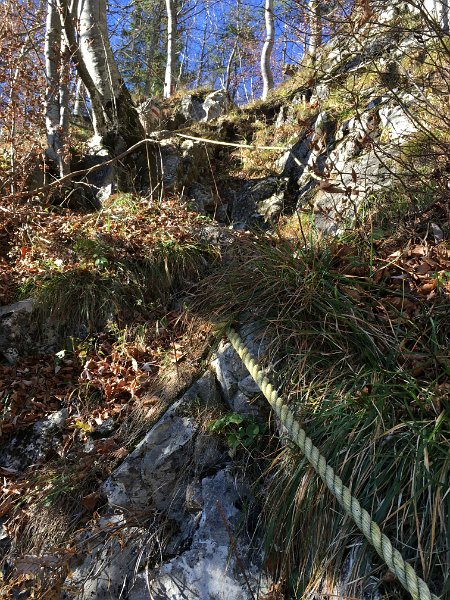 Tritt: Steiler Abstieg mit Seilen und Leitern an der Zinglenflue