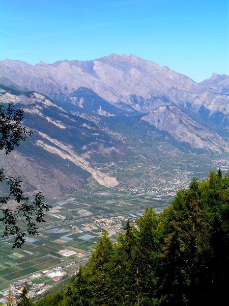 Uebers Rhonetal: Saillon, Ovronnaz, dahinter Haut de Cry