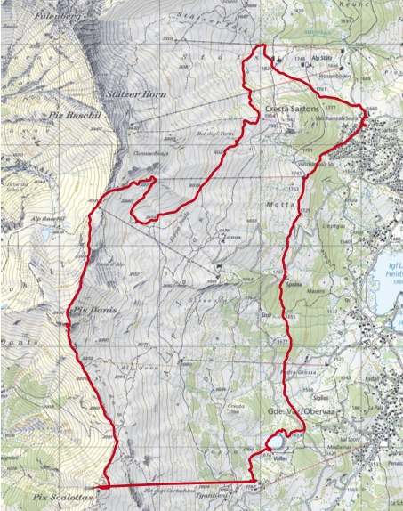 Sartons - Piz Danis - Piz Scalottas - Tgantieni - Sartons; 15 km ; 5h45