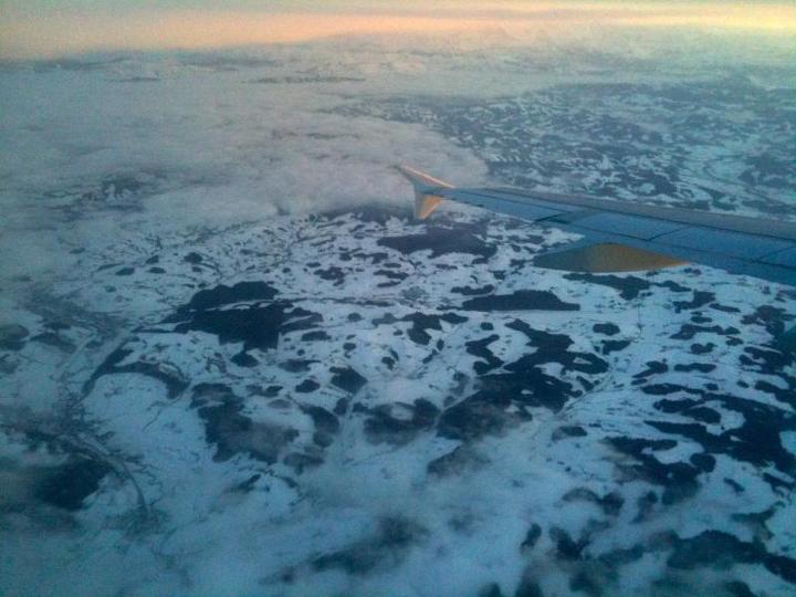 Flug LX 2150 über dem verschneiten Emmental