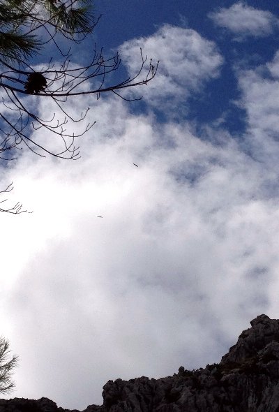 2 Geier drehen hoch über uns ihre Runde, bevor sie in ihr Nest abtauchen