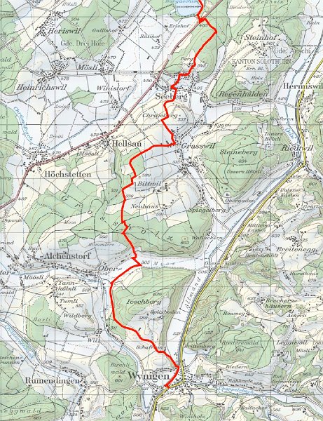 Burgäschi - Seeberg; und dann von der Route weg nach Süden bis Wynigen (SBB)