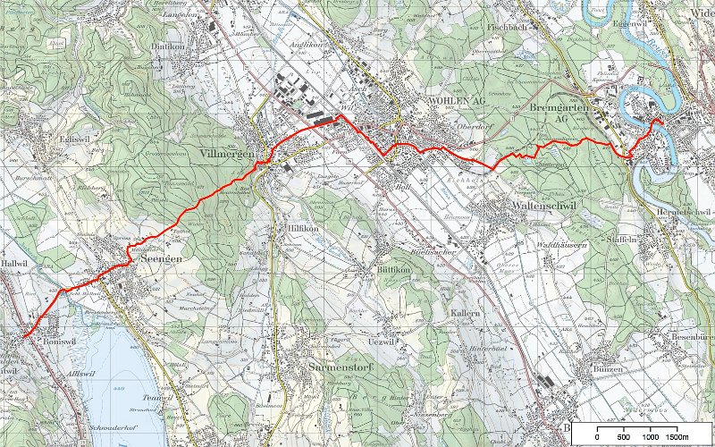 Bremgarten - Wohlen - VIllmergen - Seengen - Boniswil ; 16.4 km, 4h30 ; 15. März 2014