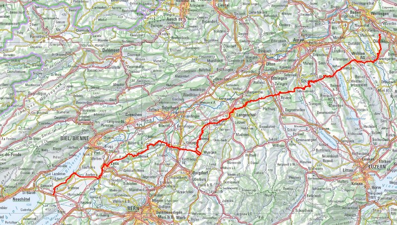Teil 1: 165 km ; Spreitenbach bis Ins ; gewandert Feb/Mar/Apr 2014