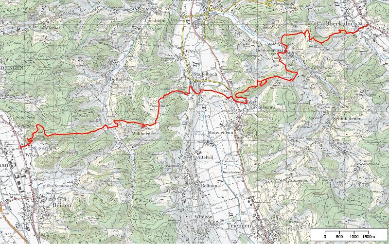 Oberkulm - Schlossrued - Kirchleerau - Williberg - Wikon ; 21.5 km - 5h30 ; 5. April 2014