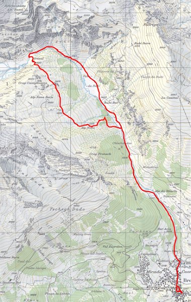 Breil/Brigels - Alp Nova Val Frisal - Brigels: 12.5 km - +/- 700m Höhenunterschied - 4h30