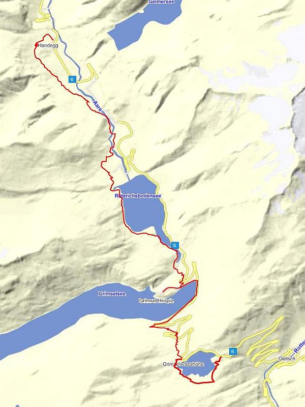 Handegg - Grimselhospiz 3h30 ; Hospiz - Passhöhe 1h ; Passhöhe - Grimselblick 0h30
