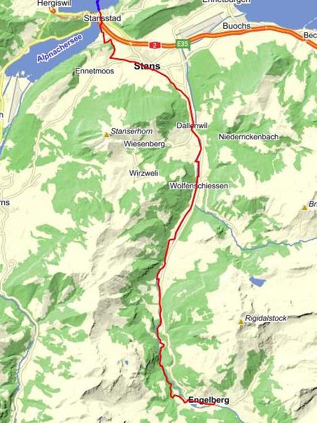 Stansstad - Stans 1h10; Stans - Dallenwil 1 h ; Dallenwil - Wolfenschiessen 0h40 ; Wolfenschiessen - Grafenort 1h15 ; Grafenort - Engelberg 2h30