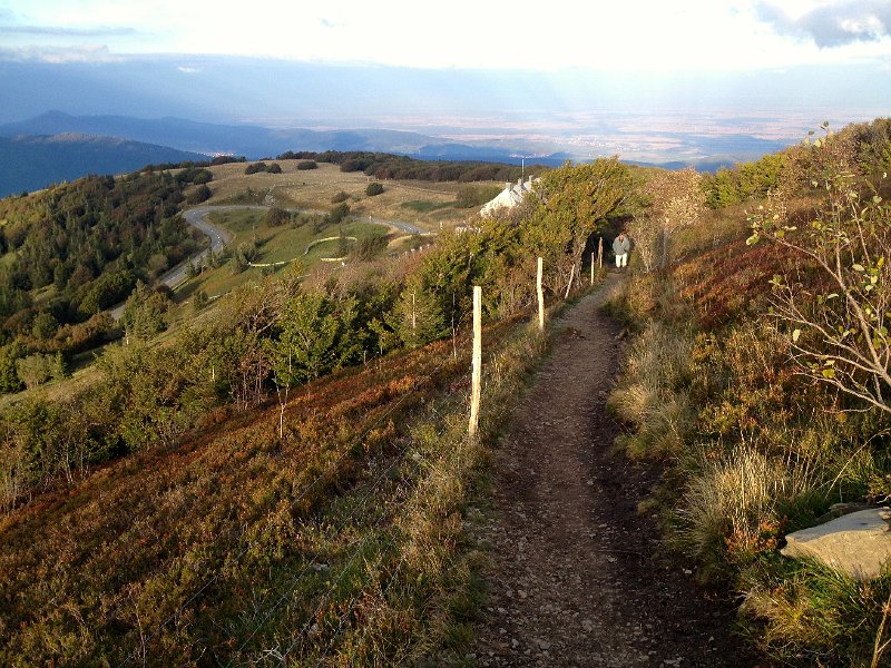 Abendlicht am Grand Ballon, dahinter Rheinebene
