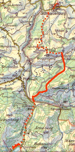 Wegstrecke eingesehen werden (Schwarzsee- Euschelspass).