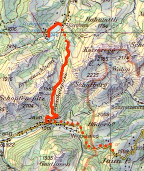 zum Jaunpass (1509 m); Uebernachtung im Hotel