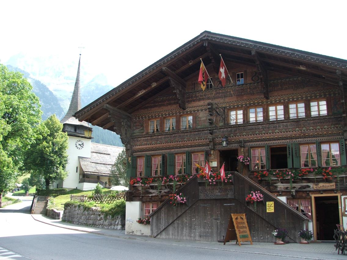 Gsteig: Hotel Bären mit Kirche