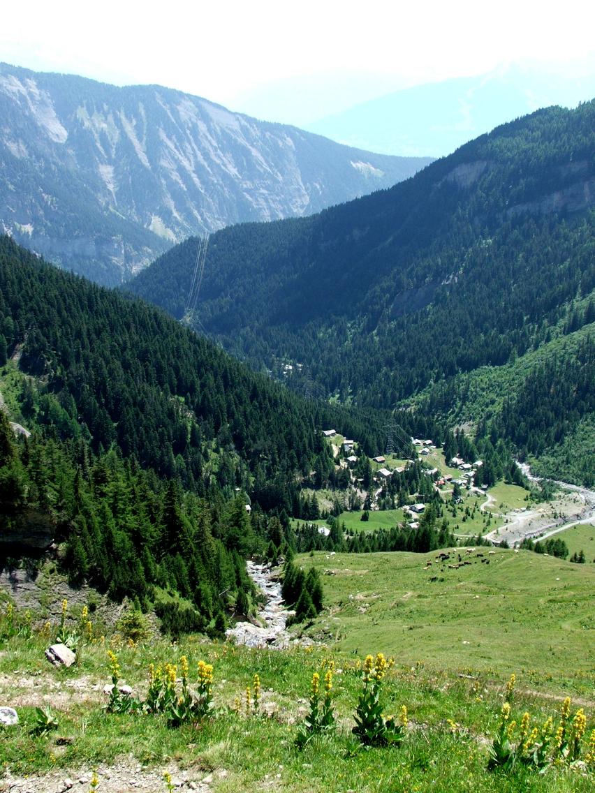 La descente sur Glarey est raide sur l'ancien chemin du col. |