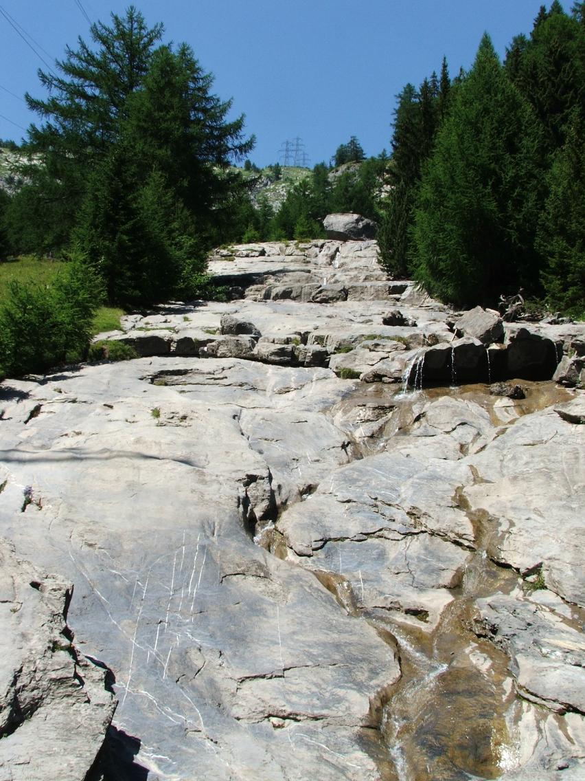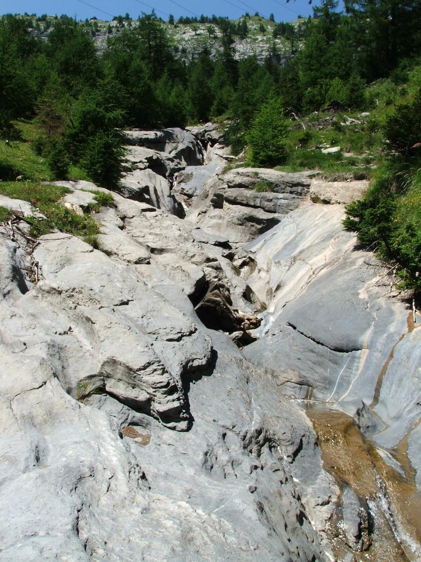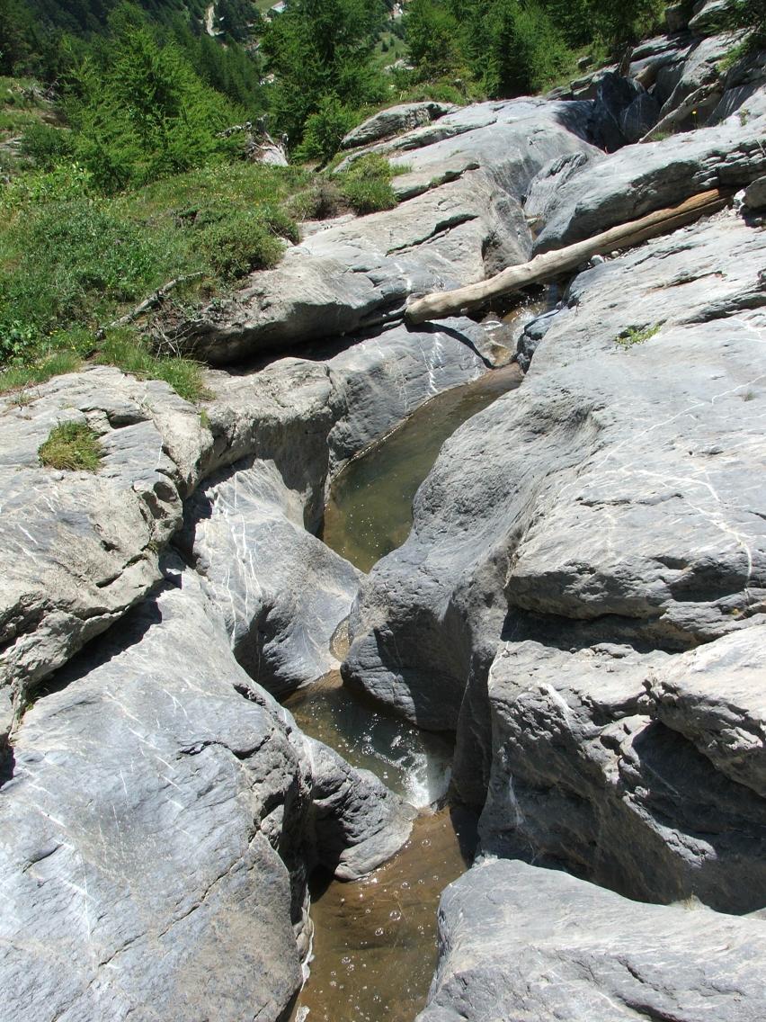 Das Bachbett der Morge besteht hier nur noch aus riesigen zerfressenen