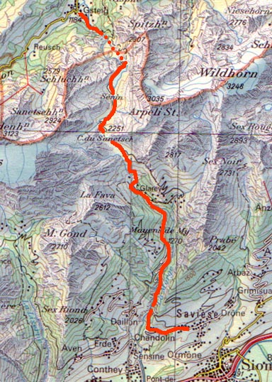à Granois/Savièse; Du barrage jusqu'à Granois on comptait 6h30. |