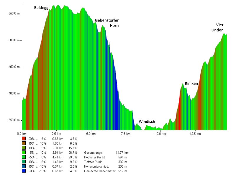 Baden - Ruine Stein - Baldegg - Gebenstorfer Horn - Windisch - Brugg - Riniken - Vier Linden - 4 Std. 30 Minuten, ca. 15 km