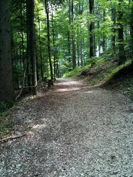 Vom Lägernsattel her Abstieg der Nordflanke entlang auf angenehmen Waldwegen.