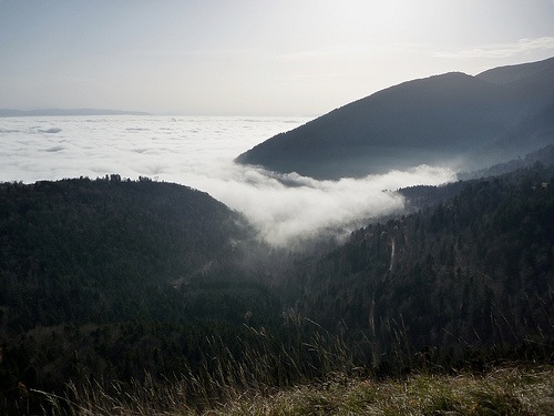 Nach 5 Tagen Herbstsonne tauchen wir am Col de la Faucille in die Nebelsuppe ein (Wegen technischen Problemen gibt es leider kein Originalbild vom Abschluss der Tour).