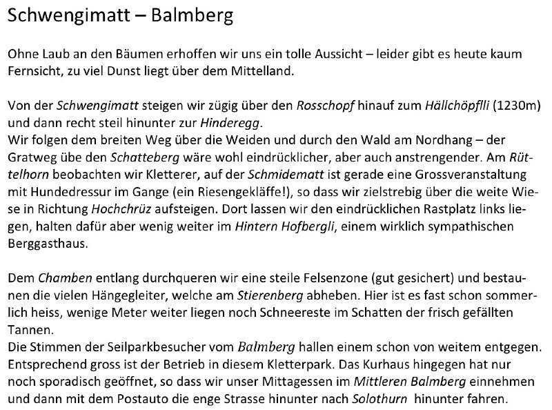 25. April 2010: Schwegimatt - Schmidematt - Balmberg; ca. 4h15