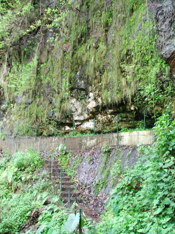 steiler rutschiger Pfad führt hinauf an die Levada Nova