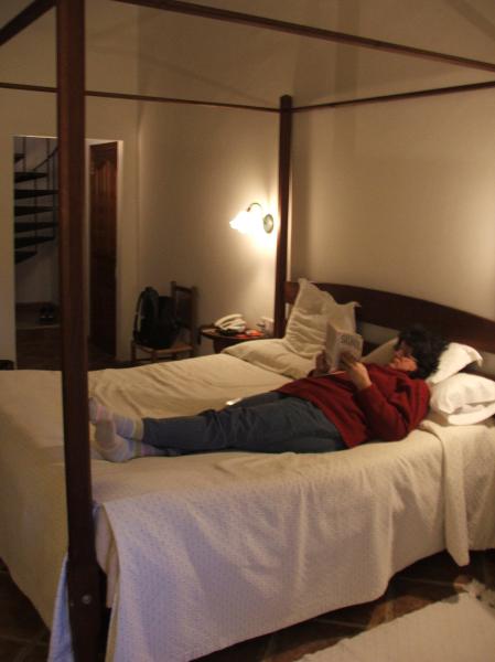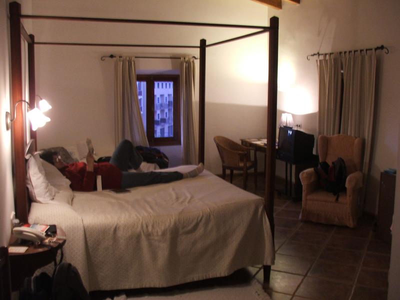 in einem grosszügigen Zimmer in einem Nebengebäude untergebracht