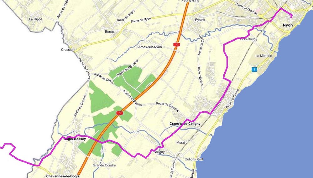 02.10.08 - Nyon Nyon - Bois Bougy 411m - Crans p.Céligny 425m 0.50h - Céligny 431m 0.20h - Château de Bossey - Bogis-Bossey 468m 0.55h - Chavannes de Bogis Douane 466m 0.20h - Divonne Lac - Divonne 475m 0.35h - Stadtrundgang 0.30 h - ca. 15 km, Wanderzeit: 3.30 h |