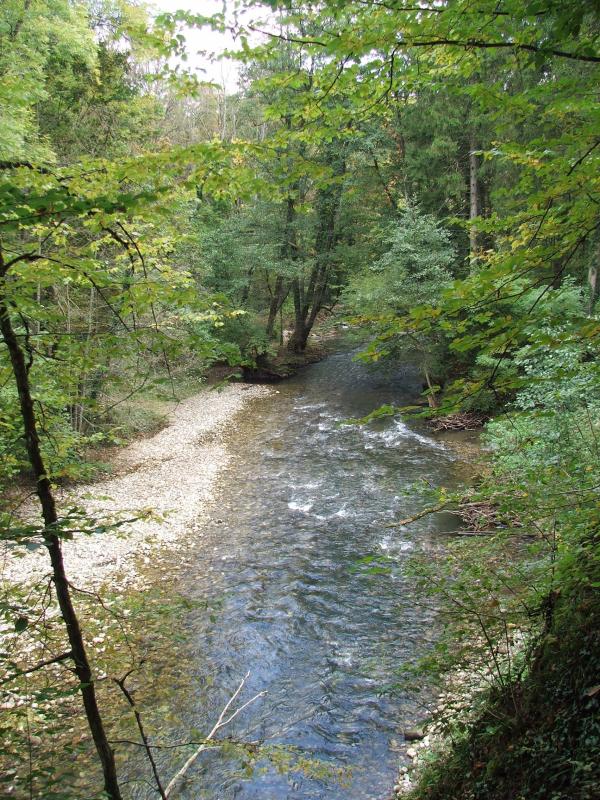 Highlight! Und weil's so schön ist, bleiben wir auf dem Uferpfad - der Wanderweg zweigt bald einmal ab, in sicherer Distanz zum Flüsschen auf die Anhöhe. So brauchen wir auch fast doppelt so lange als auf den Schildern vermerkt war (0.45h > 1.30h) |