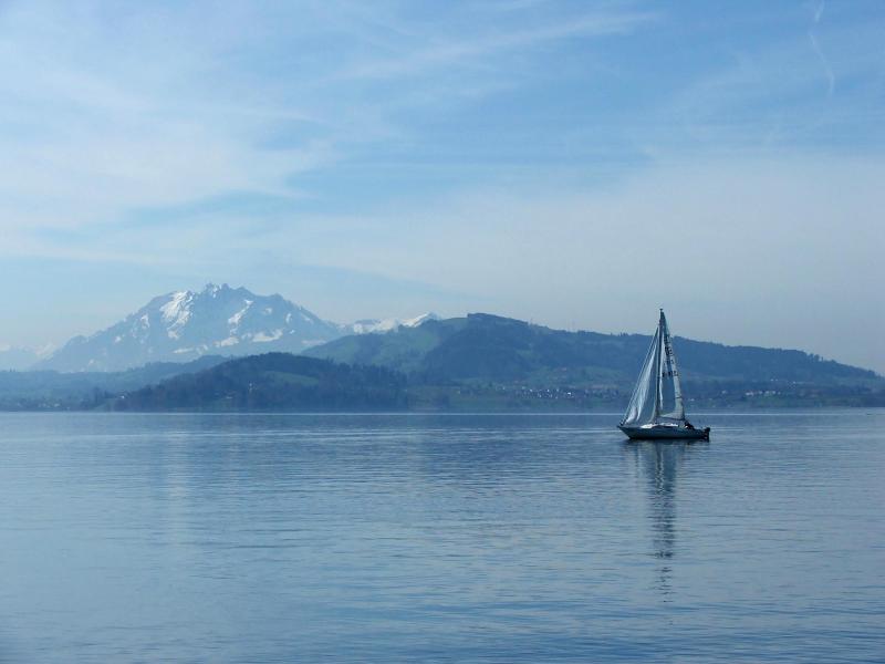 | Segler mit Pilatus im Hintergrund | "Brüggli" | Uferwege | Blick Richtung Cham |