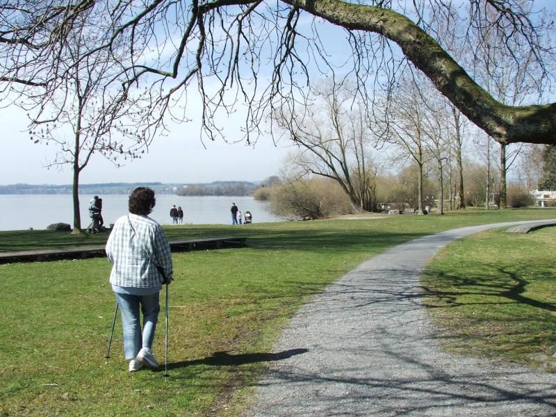 (viele Spaziergänger, Radfahrer) geht es locker der Promenade entlang.