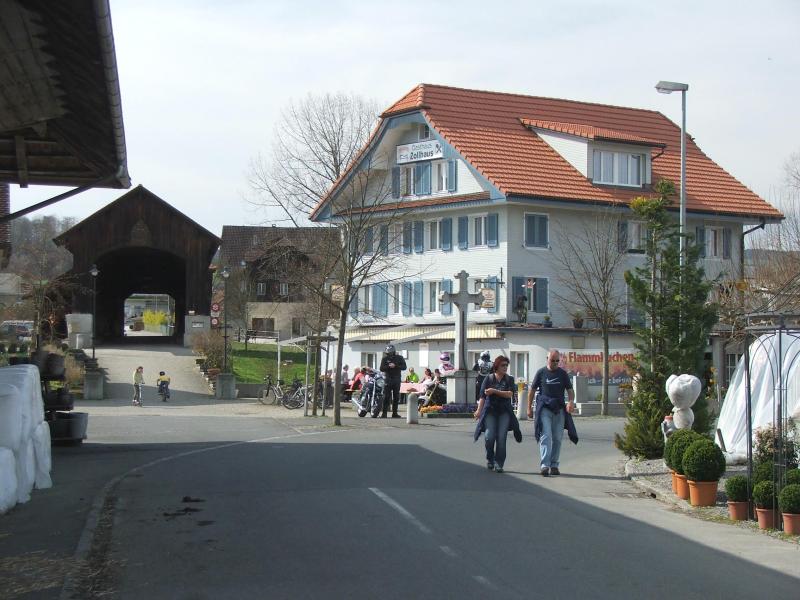 | Nach knapp 3 Stunden erreichen wir die alte Holzbrücke bei Sins und wechseln vom Kanton Zug in den Aargau. | ![]() |