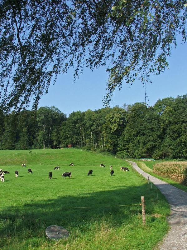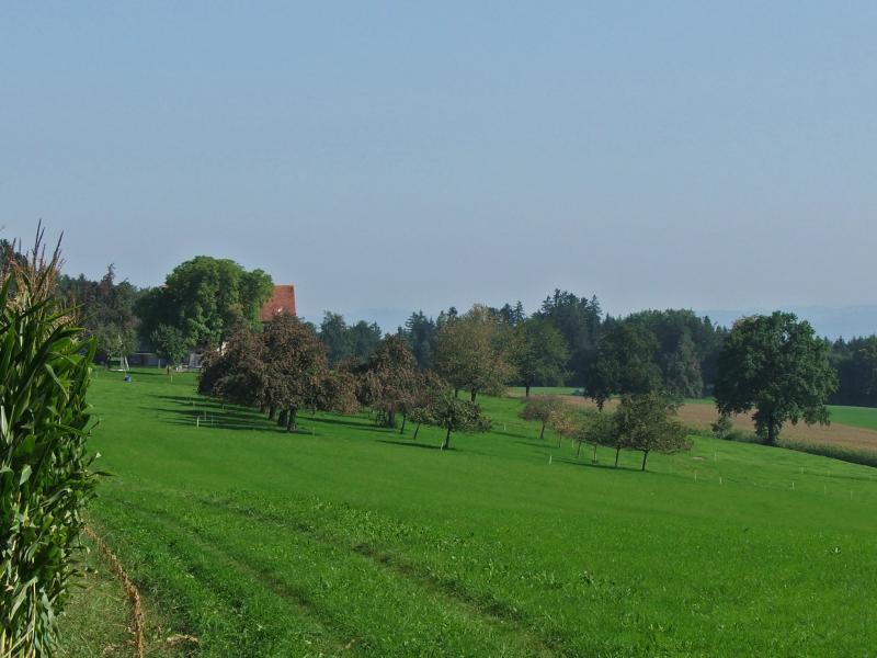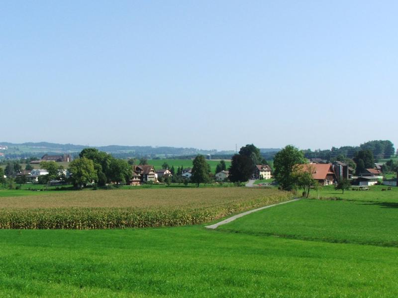 merkt... aber dann nachhaltig. In Oberebersol führt der kürzere Weg nach links Richtung Hochdorf, jener rechts macht eine Schlaufe über Hohenrain. Schnell gelangt man so nach unterebersol, Hochdorf liegt zu Füssen. Nun weist das Wanderwegschuld aber brüsk nach links und leitet auf eine Schlaufe durch den Wirtlewald (schöner Rastplatz). Bevor der Weg zur Ortsmitte abzweigt geht es geradeaus hinüber nach Ligschwil. Nun ist Improvisation angesagt - mögliche Wege führen via Rain hinüber nach Sempach oder zurück nach Hochdorf/Huwil und dann über Römerswil. Ich schlage mich (für einmal ohne Karte!) irgendwie durch: Hinauf nach Rehag, dann der Landstrasse entlang bis oberhalb Rain und dann hinauf nach Ob.Bueche und Hildisrieden. Nachträglich merke ich, dass das wohl gar keine schlechte Variante war. Nach Obere Bueche biege ich bald von der Landtstrasse links ab in den feldweg der zu den Höfen Usserbueche und Ohmelinge führt. |
