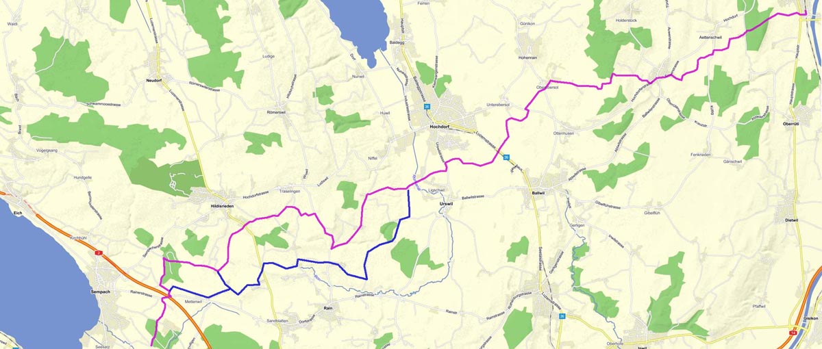 leicht an bis die Anhöhe des Widachers (Kantonsgrenze AG-LU) erreicht