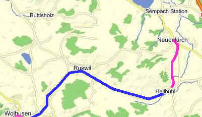 18.7.08 - Sempach Sempach-Neuenkirch 514m - Neuenkirch 552 m - Härdmänigen 593m - Hellbühl 638 m (1 h); Bus Hellbühl-Ruswil-Wolhusen Bahnhof. |