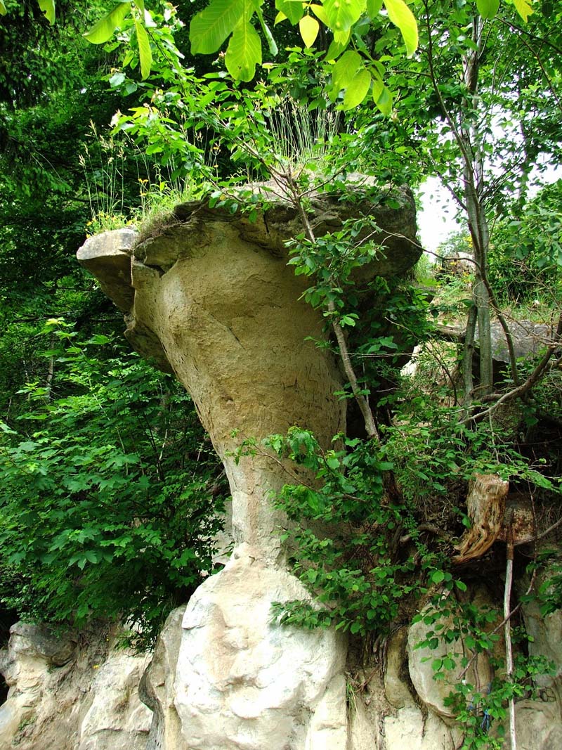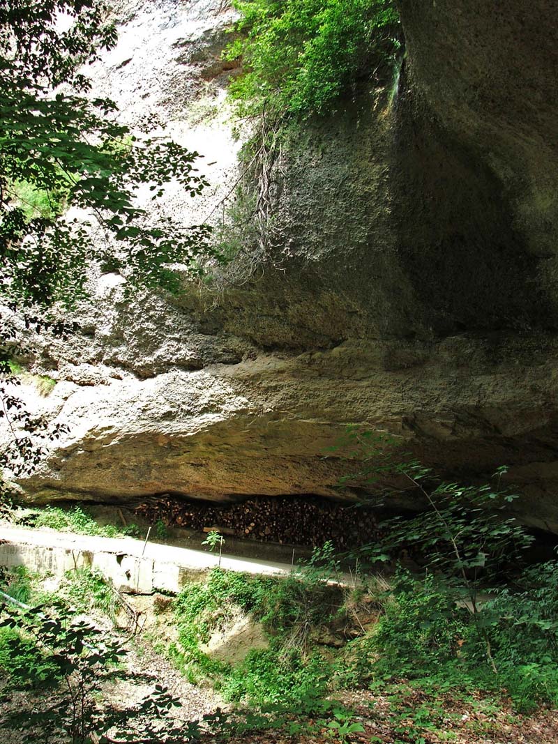 Sandsteinfelsen am Wegrand.