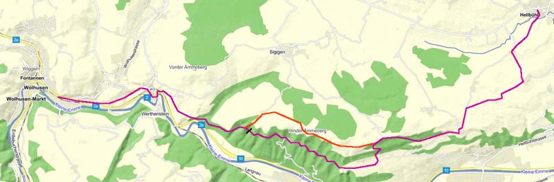 01.06.09 - Hellbühl ÖV Luzern - Hellbühl Hellbühl 638m - Zinggen 661m - Fore 702m - Schluecht 763m (1.15h) - Ammergerige 693m (0.20h) - Bäre 720m (0.40h) - Näbdeflue 677m (0.15h) - Schauisfeld - Werthenstein 550m (0.40h) - Wolhusen Bahnhof 565m (0.30h). ca. 4 h, 15 km GPS-Tracks und Karte |