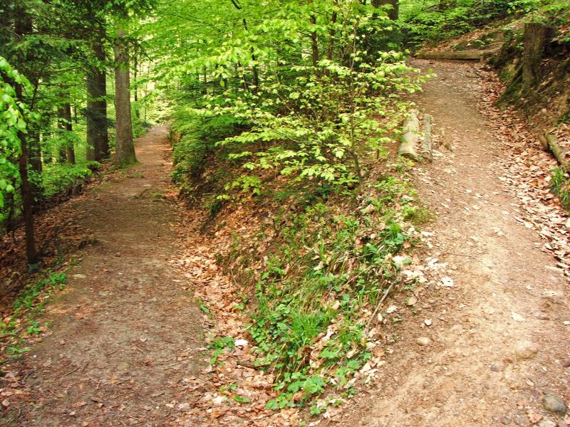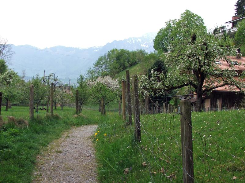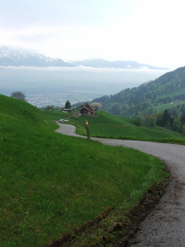 rutschige Wiesenpfade, aber auch längere Abschnitte der Strasse