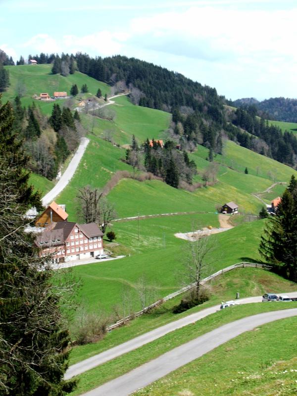 erste, längere Etappe. Wir wählen den Weg über St.Anton - Surugge - Schäbrig nach Gais anstelle der Originalroute über Trogen - Gäbris. |