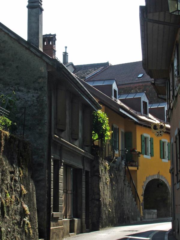 In Villette wechselt der Wanderweg vorübergehend an die "Route Suisse" - die vielbefahrene Hauptstrasse am Seeufer. Wir folgen ihr rund 500m. |