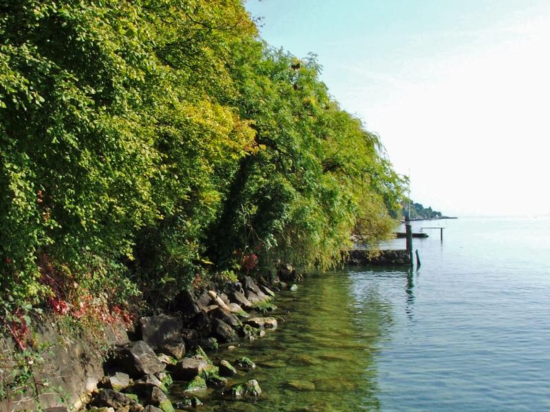Bei der Kläranlage Lutry führt der Wanderweg direkt ans Seeufer hinunter und nachher über weite Strecken unmittelbar dem Ufer entlang. |