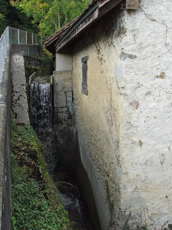 | Bei Crans geht's eine Kilometer lang geradeaus der Bahn entlang | Alte Mühle ohne Rad... | ||