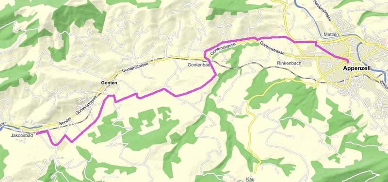 27.4.08 - Appenzell Appenzell 785 m - Gontenbad 883 m (1 h) - Gonten 923 m (0.50 h) - Jakobsbad 869 m (0.40 h) - 9 km 2.30 h GPS-Tracks und Karte |