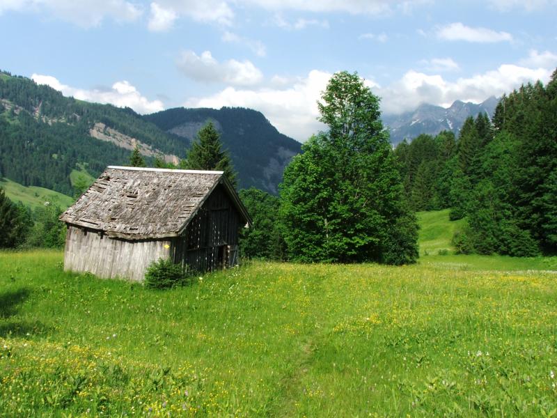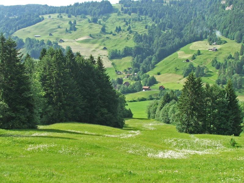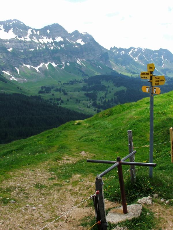 Nach der Schwägalp folgen wir erst der Originalroute bis nach Luttertannen. Dort zweigt die Alpenpanoramaroute links ab und führt über den Risipass (1459m) hinüber nach Stein im Toggenburg. Wir folgen dem Wanderweg talauswärts