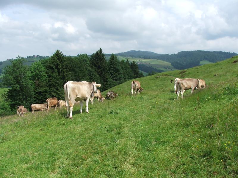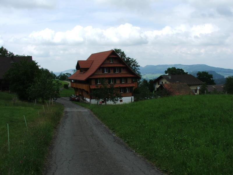 Von der unteren Brunegg (Wirtschaft) zur oberen Brunegg gehts nochmals unerwartet steil über eine Alpweide hoch.
